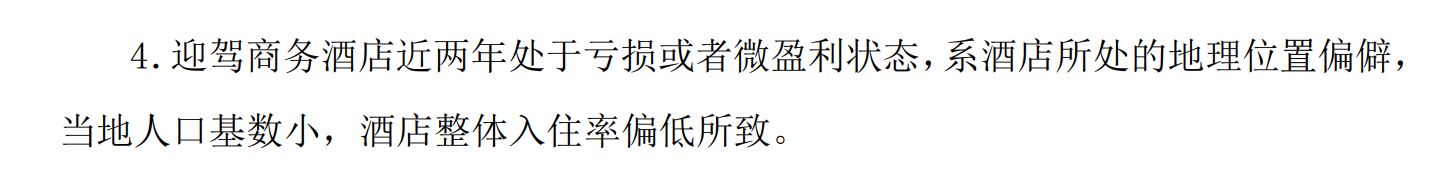 公告称:“迎驾商务酒店近两年处于亏损或者微盈利状态,系酒店所处的地理位置偏僻,当地人口基数小,酒店整体入住率偏低所致。”
