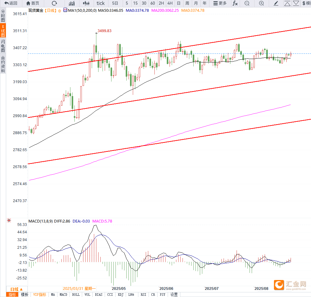 周二,黄格延续涨势,在欧洲早盘升至近两周高位3,385美元。推动黄金上涨的因素主要来自两个方面:一是美国 *** 对美联储独立性的干预担忧,二是市场对美联储即将在9月政策会议上启动降息的预期。