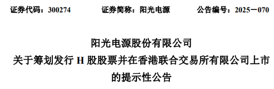 来自安徽合肥肥西县的A股上市公司阳光电源(300274.SZ)发布公告称,为深化公司全球化战略布局,提升公司国际化品牌形象,打造公司多元化融资渠道,进一步提升公司核心竞争力,公司拟发行境外上市外资股(H股)股票并申请在香港联合交易所有限公司主板挂牌上市。