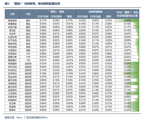 创新药、新消费:新消费几乎没有参与,创新药有一定仓位,但配置强度明显不及主动权益。