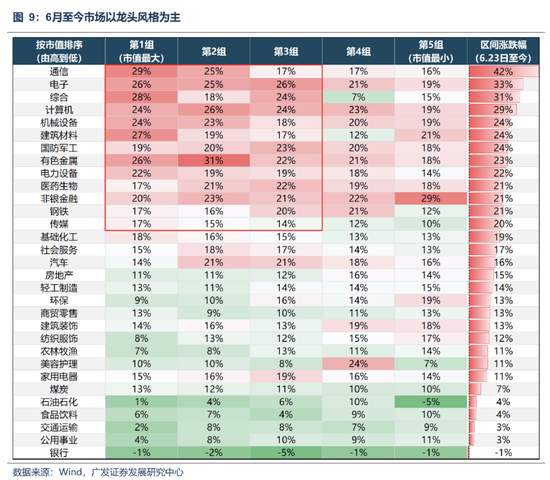 6月至今,市场以龙头风格为主,也一定程度上体现了“固收+”资金近期较大幅度流入对龙头的增配。