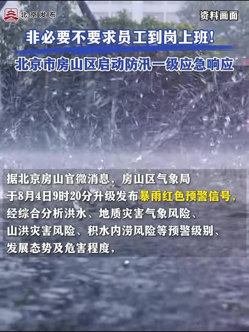 “北京应急”消息,8月26日16时,北京市发布暴雨橙色预警信号,启动全市防汛二级应急响应。门头沟、房山、昌平、怀柔、延庆等5区启动防汛一级应急响应。截至19时,全市共转移5.8万人,关闭全部山洪沟道352条,关闭景区165家、民宿4682家、露营地256家,停工工地3259项。目前,已全面测试山区卫星 *** 在线状态,部署通信无人机在门头沟、房山、密云、怀柔、延庆等区;山区前置挖掘机、装载机、铲车、运输车等大型机械设备,提前配发救生衣到险村险户;全市近20万人在岗在位,随时防范应对强降雨。