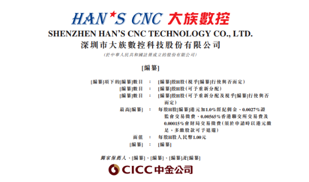 据独角兽早知道消息,来自深圳宝安区的深圳市大族数控科技股份有限公司SHENZHEN HAN’S CNC TECHNOLOGY CO., LTD.(简称“大族数控”)将于9月1日启动香港上市管理层NDR(非交易路演),预期交易规模约为4亿至6亿美元(视市场反馈和条件而定)。