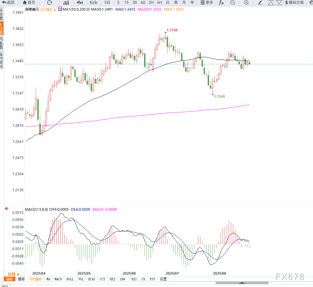 而美国方面,特朗普对美联储的干预加剧了美元的长期风险,短期虽有反弹,但难以掩盖其独立性受损的隐忧。未来GBP/USD的核心看点,将集中在英国通胀走势与美联储9月会议的降息幅度。