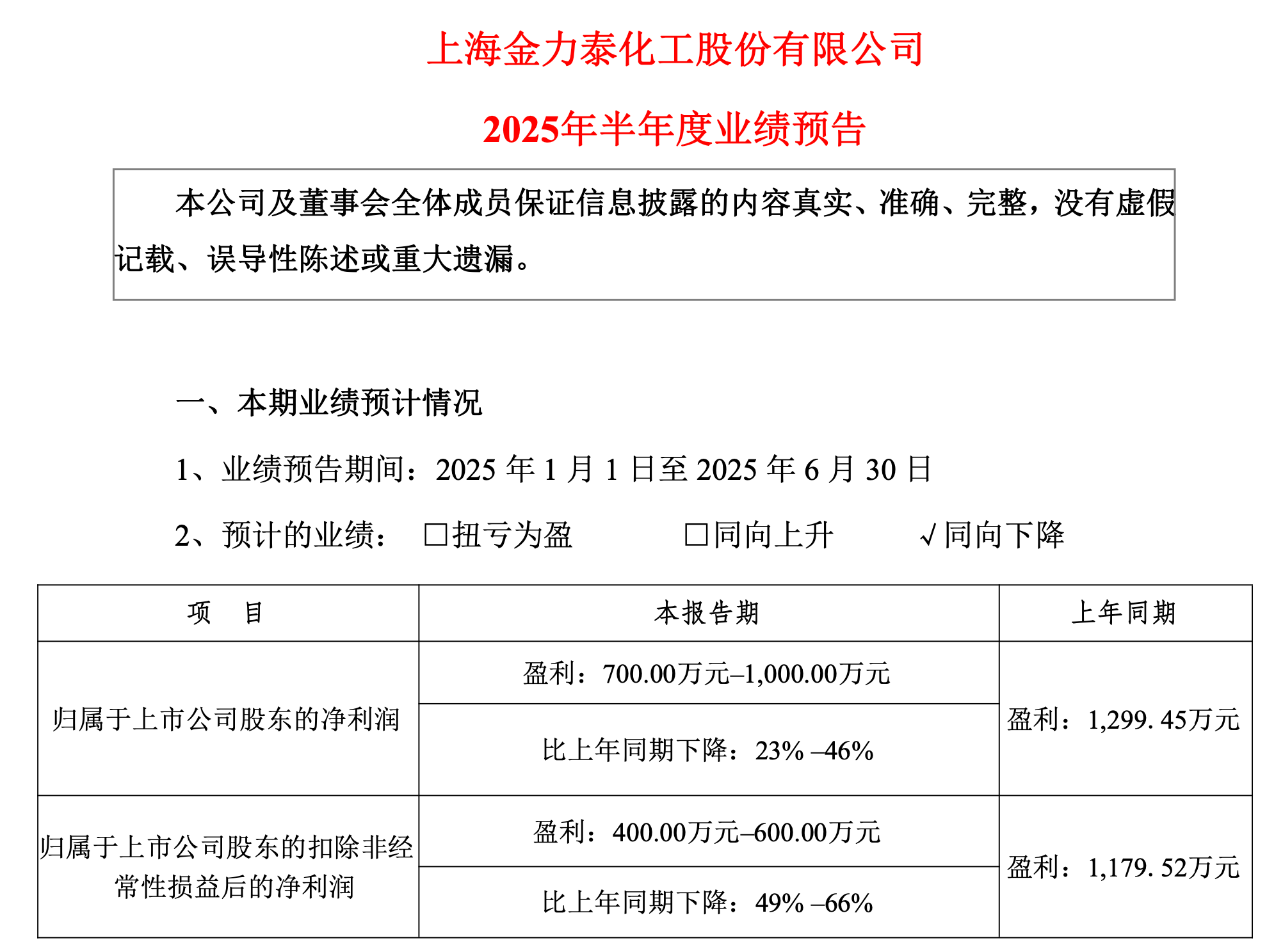 8月19日,金力泰发布2025年半年度业绩预告,其中表示,预计上半年归母净利润为盈利700-1000万元,同比下滑23%-46%;预计归母扣非净利润为盈利400-600万元,同比下滑49%-66%。
