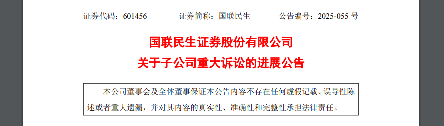 近日, 国联民生承销保荐收到济南中院送达的《民事判决书》, 判决如下: