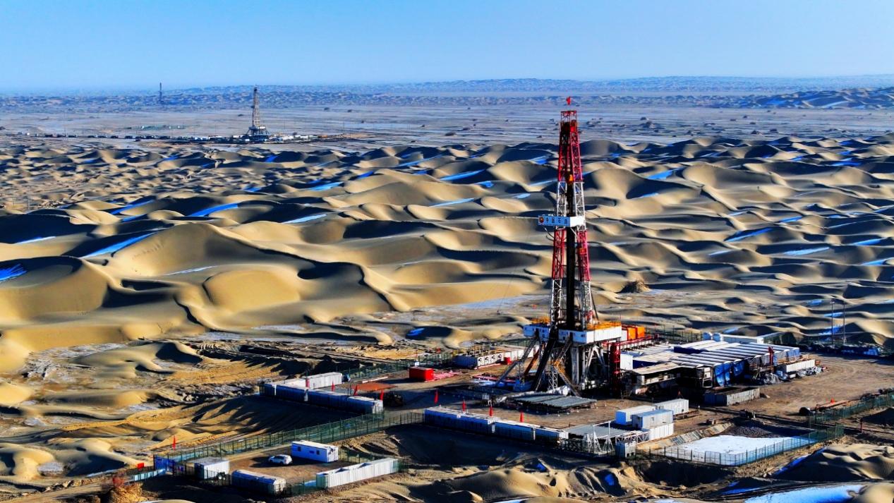 塔克拉玛干沙漠腹地风沙漫卷、钻机轰鸣,一口口超深井朝着深地挺进。图源:中国石油