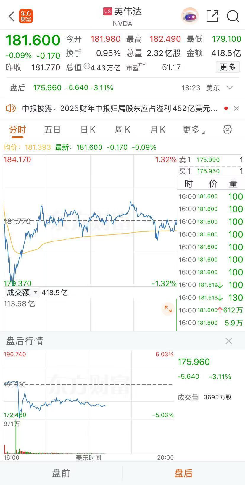 财报公布后,英伟达股价盘后先跳水,跌幅迅速扩大,一度跌5%,后收窄跌幅,目前跌3.11%。