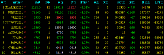 2025年8月28日,国内期货主力合约跌多涨少,涨超2%,石、、、BR涨超1%;跌幅方面,集运欧线跌超3%,、跌超2%,0>、、油、、、油跌超1%。