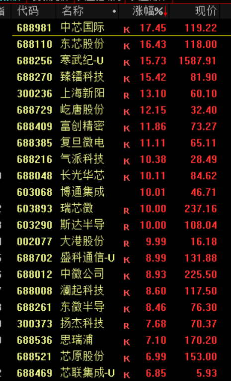 科创50指数暴涨超7%!今天的市场,上演“喜芯厌酒”行情,资金集中在芯片、算力硬件等方向。