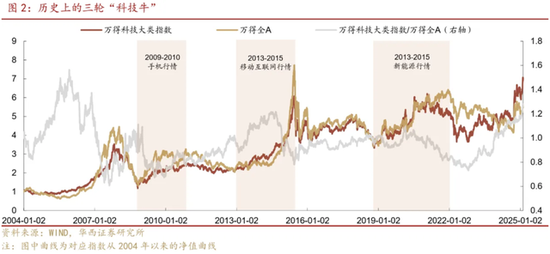 研究认为,复盘过往A股市场三轮科技牛,核心产业基本沿着“海外映射-本土化-未知领域”三个阶段发展。