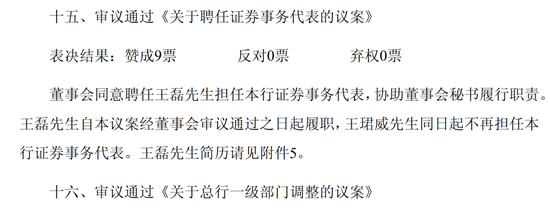 公告中,中信银行还同意聘任王磊担任证券事务代表,协助董事会秘书履行职责;王珺威同日起不再担任证券事务代表,其已于今年3月获批出任中信银行。