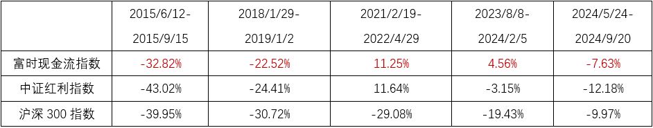 历次市场大跌期间,现金流指数相对大盘更抗跌