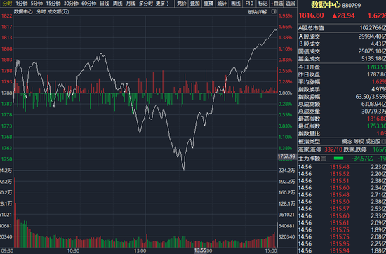 8月28日盘中,数据中心板块V形大反弹。截至收盘,、、、等20多只相关概念股涨停或涨超10%。其中,大涨近16%,股价再创历史新高,总市值突破6600亿元。