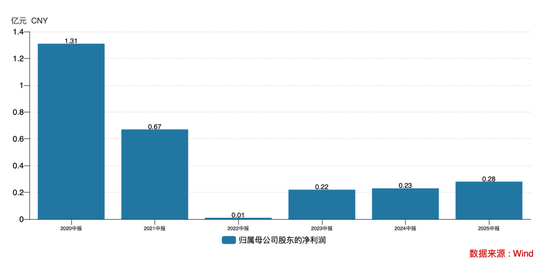 与此同时,虽然2025年上半年财报显示,公司营业收入为5.49亿元,同比上升5.4%;归母净利润为2828万元,同比上升21.8%,但盈利水平已远不及上市之前。