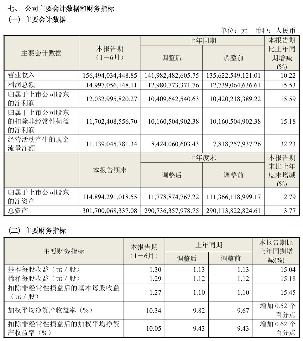 2025 年上半年,公司实现归属于母公司股东的净利润 120.33 亿元,较 2024 年同期增长 15.6%。