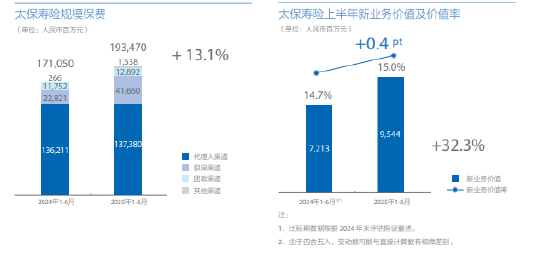 8月28日金融一线消息,发布2025年半年度报告。数据显示,2025年上半年,太保寿险2025年上半年实现规模保费1934.70亿元,同比增长13.1%。内含价值达4450.24亿元,较上年末增长5.3%;新业务价值达95.44亿元,同比增长5.6%,可比口径下同比增长32.3%;新业务价值率15.0%,可比口径下同比提升0.4个百分点。净利润206.99亿元,同比增长3.2%。