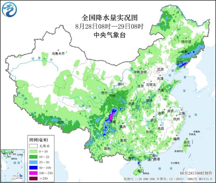据中央气象台8月29日消息,昨日,我国较强降雨多发,气象监测显示,云南西部和东北部、四川盆地西部和南部、*南部、甘肃南部、陕西南部、湖北西北部、河南中部、山东中部、辽宁中东部、吉林东部、内蒙古东北部及广东西南部、广西中部和南部等地部分地区出现大到暴雨,其中辽宁丹东和山东潍坊出现大暴雨,四川盆地西部出现大暴雨,阿坝和成都局地特大暴雨。