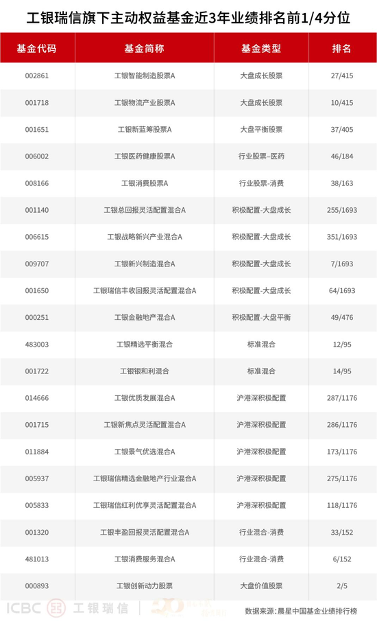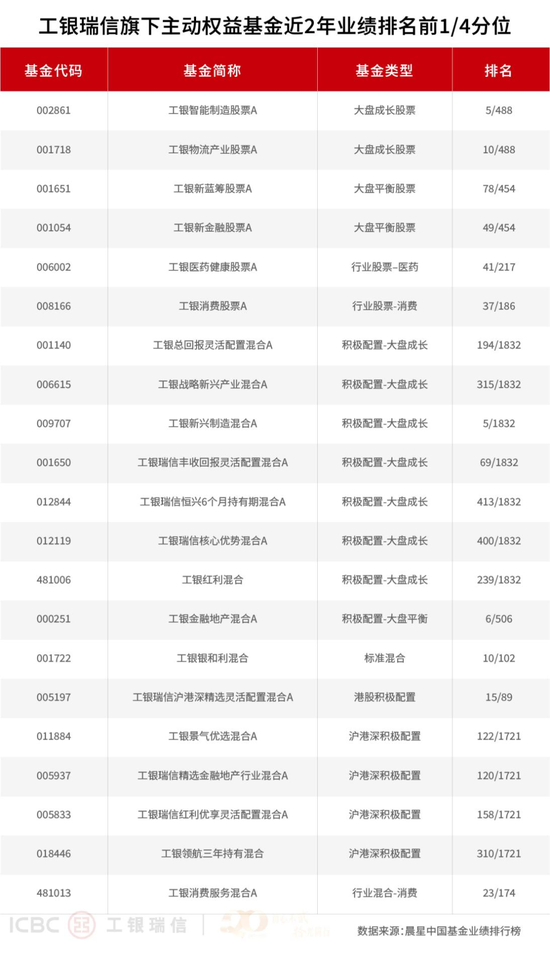 3、权益类大型超额收益排名、权益类基金超额收益排名来源于国泰海通证券,数据截至2025年6月30日。工银瑞信权益类基金大型公司超额收益近七年(2018.07.01-2025.6.30)行业2/13,近五年(2020.07.01-2025.06.30)行业1/13,近三年(2022.07.01-2025.06.30)行业2/13,近两年(2023.07.01-2025.06.30)行业1/13;工银瑞信权益类基金大型公司绝对收益近七年(2018. 07.01-2025.6.30)行业2/13,近五年(2020.07.01-2025.6.30)行业1/13。
