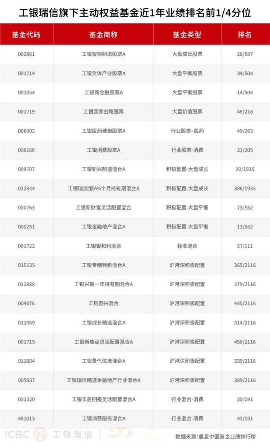 在不同风格和行业主题产品中,工银瑞信基金旗下产品全面开花。根据Morningstar晨星中国数据统计,截至2025年6月30日,在近一年、近两年主动权益类基金业绩榜单中,工银瑞信旗下分别有20只和21只产品名列同类前1/4分位;更长周期来看,近三年与近五年统计区间中,工银瑞信旗下分别有20只和30只主动权益类基金位居同类前1/4。