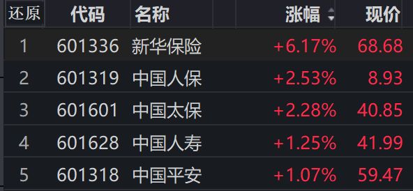截至午间收盘,保险板块上涨2.22%。其中,上涨2.53%,上涨2.28%,新华保险上涨6.17%,上涨1.25%,涨1.07%。