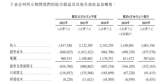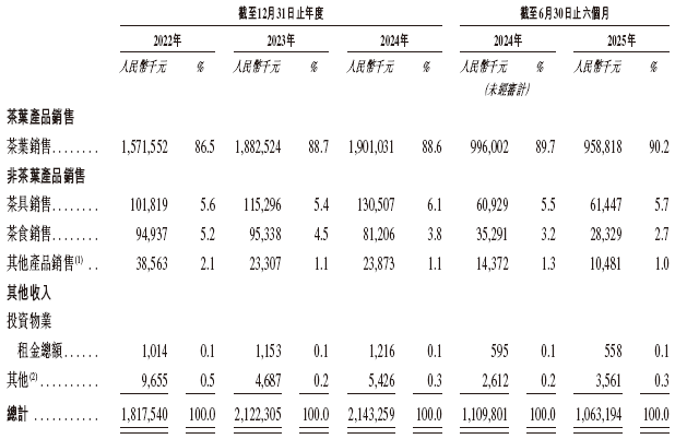 招股书显示,在过去的2022年、2023年、2024年和2025年前六个月,八马茶业的营业收入分别为人民币18.18亿、21.22亿、21.43亿和10.63亿元,相应的净利润分别为人民币1.66亿、2.06亿、2.24亿和1.20亿元。
