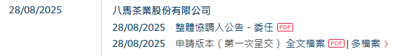 2025年8月28日,八马茶业股份有限公司 Bama Tea Co., Ltd.(下称“八马茶业”)向港交所递交招股书,拟香港主板挂牌上市。这是继其于2025年1月17日递表失效后的再一次申请。
