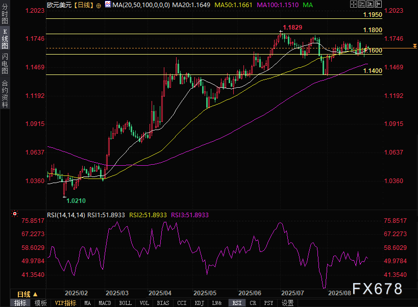 在鲍威尔讲话引发最初反应后,美元兑主要货币走弱,但目前保持中性态势。市场现已近乎完全定价美联储将在9月会议上降息25个基点。月度核心PCE数据将具有极高重要性,因其不受基数效应扭曲。但由于鲍威尔讲话市场已提前消化意外因素,市场反应可能短暂,若该数据录得0.5%或更高,可能引发美元反弹并压制欧元兑美元;若读数在0.2%或以下,则可能对该货币对走势产生相反影响。欧元兑美元技术分析FXStreet首席分析师Eren Sengezer分享欧洲时段欧元兑美元技术展望:“日线图14日相对强弱指数(RSI)在50略上方横向波动,且欧元兑美元在20日简单移动平均线( *** A)(1.1649)与50日简单移动平均线( *** A)(1.1661)附近徘徊,表明方向性动能缺失。”