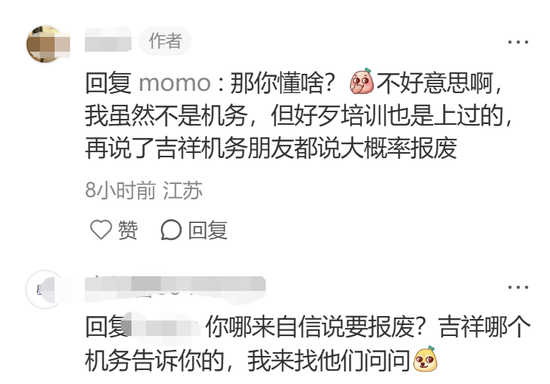 “不好意思啊我虽然不是机务,但好歹培训也是上过的再说了吉祥机务朋友都说大概率报废”