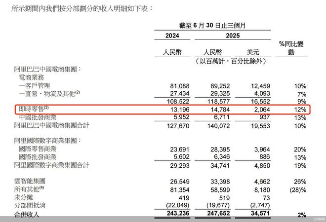 本地生活市场重量级玩家公布了成绩单。近日,阿里巴巴集团发布2026财年之一季度(即自然年2025年二季度)财报,首次重新划分业务归属,更为聚焦电商和云业务。与此同时,得益于饿了么、飞猪等资源整合以及会员打通,阿里即时零售收入同比增超一成,有效带动用户活跃和广告收入。