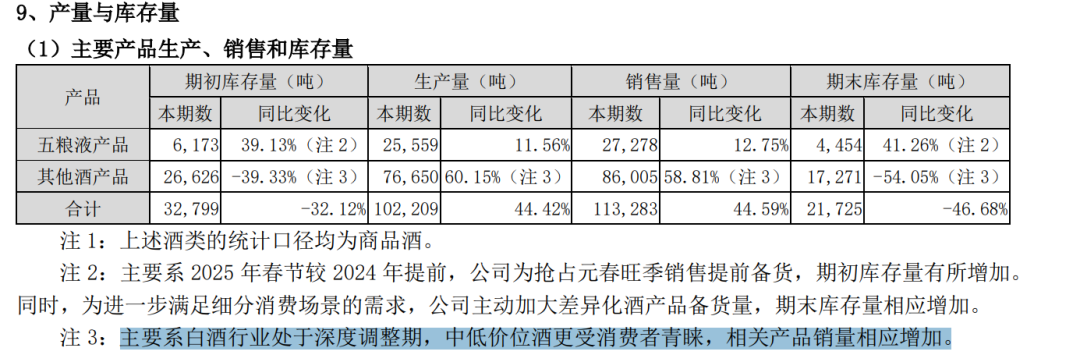 五粮液半年报显示,五粮液产品销售量同比增长12.75%,而其他酒产品销量同比增长58.81%。五粮液称,主要因中低价位酒更受消费者青睐,相关产品销量相应增加。