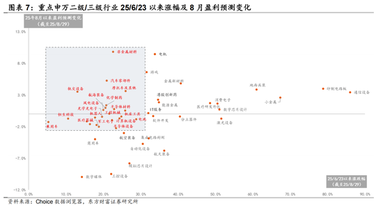 科技成长风格中,值得关注的是6月以来涨跌幅仍相对落后、但近一月盈利未明显下调且后续具备一定潜在催化的细分,结合我们判断,重点关注【恒生科技、机器人、半导体设备、电池】等。尤其是前期滞涨的恒生科技指数当下已具备较高配置价值,一是其资产质量优异、基本涵盖国内互联网科技龙头,25Q2腾讯、阿里两大龙头的财报数据表现亮眼,AI相关业务已体现明显业绩贡献,阿里AI芯片业务的布局进一步打开远期想象空间;二是港股流动性近期也迎来边际改善,鲍威尔表态转鸽,港汇脱离弱方兑换保证,Hibor快速上行后维稳,前期港股资产价格的估值压制正逐步缓解。