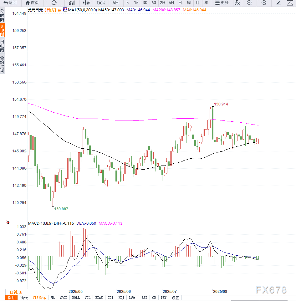 汇通财经APP讯——周一开盘,一度走高至147中段,但并未突破区间。投资者在美国劳动节假期前保持谨慎,交投清淡。