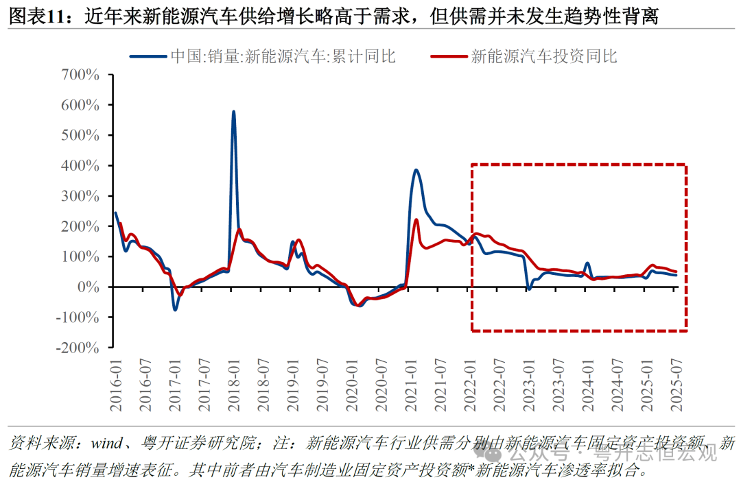 正是由于原因不同,面对需求下行时,供给侧改革时期企业投资随盈利恶化而回落,产能随之收缩;而反内卷更多发生在技术更新迭代迅速、技术路线和行业格局尚未定型的新兴领域,企业一旦停止投入就可能彻底失技术优势和市场份额,因此企业即便短期亏损,也必须持续投入以争取未来生存空间,形成了“越亏越投”的独特困境。供给侧改革前期,供给侧改革行业工业利润增速由2014年初的-24.1%下滑至2015年末的-58.9%,制造业投资增速从2014年初的8.2%跟随式下滑至2015年末的-14.4%。而本轮反内卷时期,制造业工业利润增速自2022年以来多数处于负值区间,但制造业投资却保持在10%左右的较高增速。