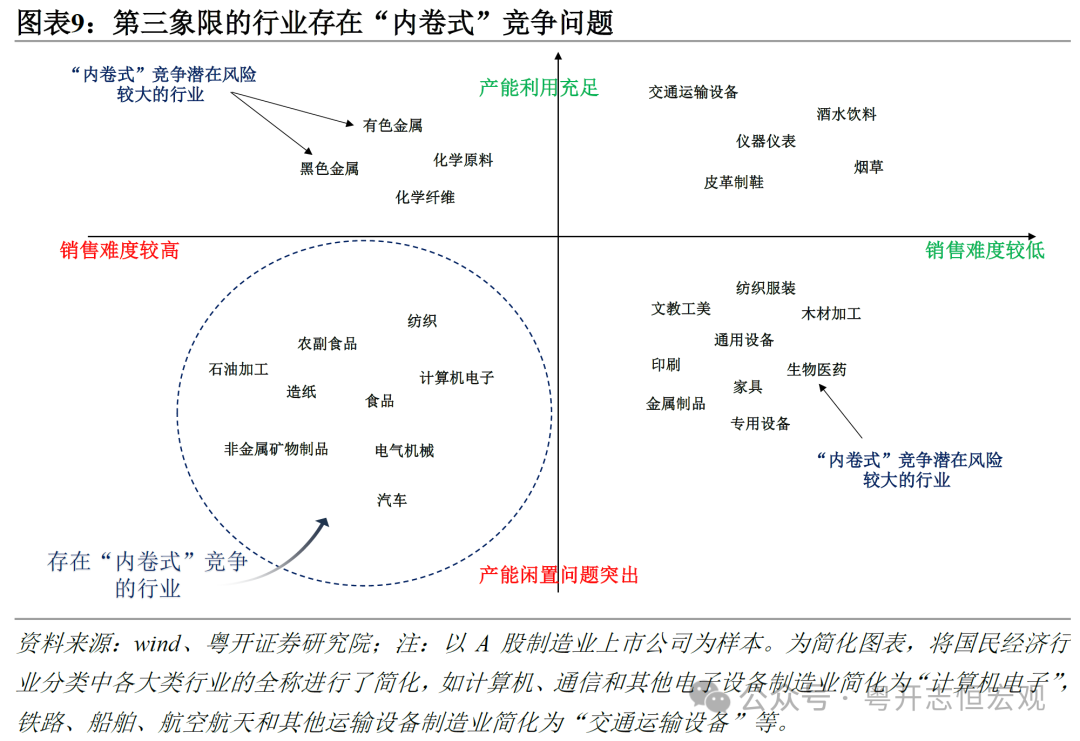 其一,从行业覆盖范围看,供给侧改革集中在钢铁、煤炭、水泥等中上 *** 业和传统行业领域,是房地产、基建的上 *** 业;而反内卷覆盖面更广,上、中、下 *** 业均有覆盖,而且向“新三样”、平台经济等新领域扩散。结合产能利用情况和销售难易程度,大致可以认为,存在产能闲置问题且销售难度加剧的行业已经面临较严重的“内卷式”竞争问题。当前“内卷式”竞争主要集中在以下三大类行业: