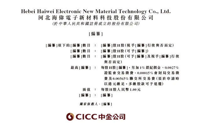根据备案通知书,海伟电子新材料拟发行不超过约4,742.30万股境外上市普通股并在香港联合交易所上市,以及14名股东拟将所持合计2,901.9539万股境内未上市股份转为境外上市股份。