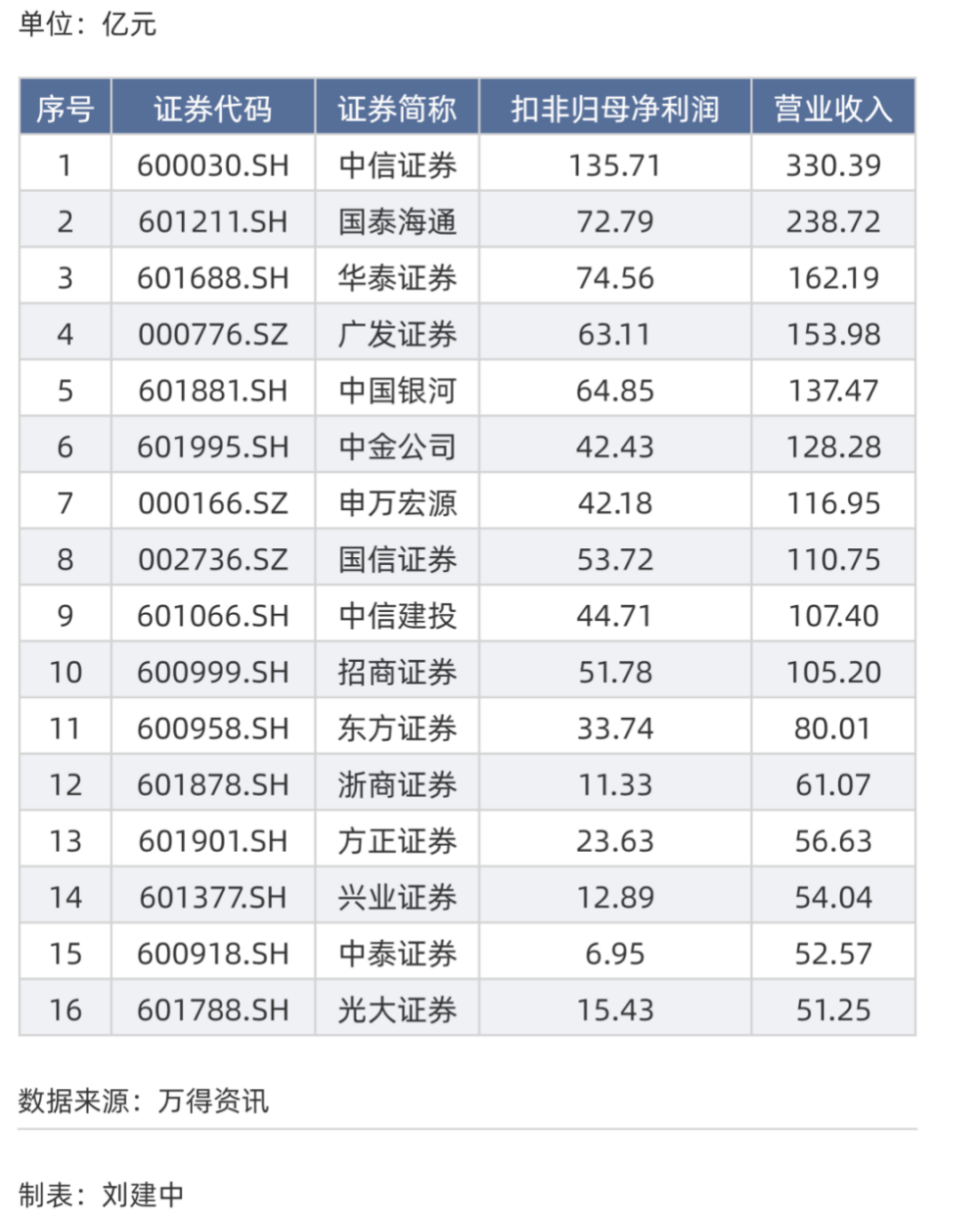 表3: A股营收16强证券公司的营收与扣非归母净利润(2025年上半年)