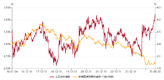 数据来源:数据来源于WIND,数据截止2025年8月20日,指数(中债国债到期收益率、)行情走势不预示其未来表现,也不代表具体基金产品表现。以上信息仅供参考,不代表任何投资建议。基金有风险,投资需谨慎。