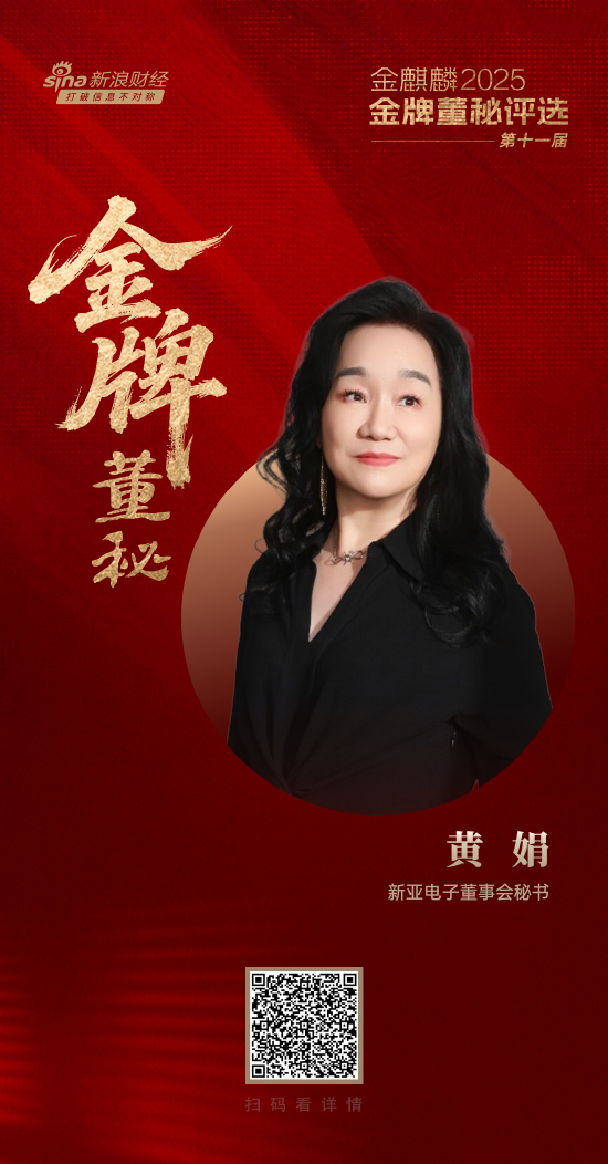 本届荣获金麒麟·金牌董秘称号的新亚电子董秘黄娟,正是这一群体中的杰出代表。该荣誉不仅体现了其个人在资本沟通、合规治理与战略协同方面的卓越能力,也反映了市场和投资者对新亚电子治理水平与价值成长的高度认可。