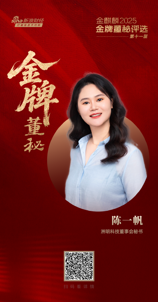 9月1日,第十一届新浪财经·金牌董秘榜单正式揭晓。在本次备受瞩目的评选中,董事会秘书陈一帆凭借卓越的专业能力和出色的工作表现荣耀加冕,荣获第十一届金麒麟·金牌董秘新锐进取奖。