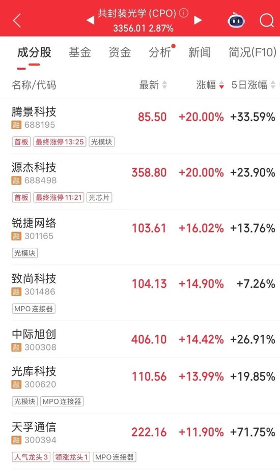 今日午后,CPO概念拉升。“20CM”涨停,涨停,中际旭创、新易盛、等涨幅居前。