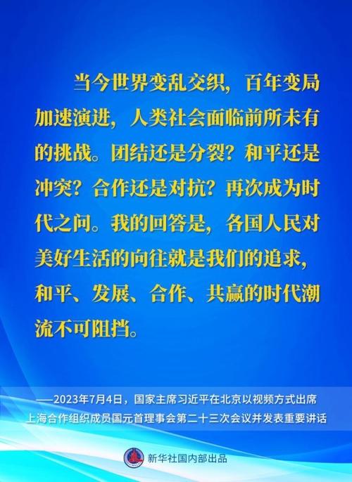 我们要为捍卫国际公平正义采取“上合行动”。各成员国秉持公正公道原则,建设性参与国际和地区事务,捍卫全球南方共同利益。我们要继续旗帜鲜明反对霸权主义和*治,践行真正的多边主义,担当起推动世界多极化和国际关系*的*。