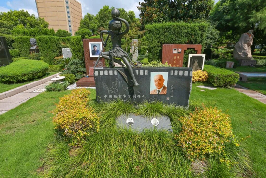 墓碑不再是一块石碑加上艺术字那么简单,更多的是那些和逝者过往人生紧密勾连的设计。经典国产动画《大闹天宫》的导演万籁鸣被誉为“中国动画电影之父”,他于1997年逝世,墓碑位于上海福寿园。那座墓碑被设计成了一卷电影胶卷的形状,上方坐着《大闹天宫》里的悟空形象——一手持金箍棒,一手托着蟠桃。