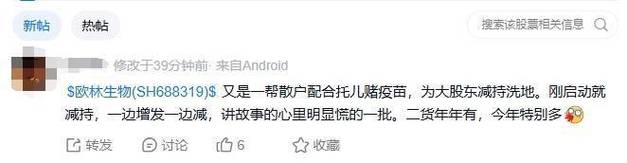 欧林生物表示,截至目前,公司生产经营一切正常,“疫苗研发生产基地技术改造项目”仍按计划有序推进。终止本次定增不会对公司的日常生产经营造成重大不利影响,不存在损害公司及全体股东利益的情形。