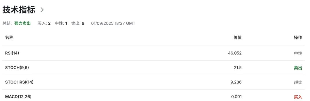 技术指标显示,日线级别布林带上轨切入点指向的1.3895区域水平为汇价提供短期动态阻力,中轨运行线指向1.3795区域水平为其走势界定潜在强弱分化,布林带下轨指向的1.3700区域水平为汇价提供短期动态支撑。当前汇价介于布林带中轨与下轨之间运行,显示多空力量维持相对均衡状态。布林带开口未见明显扩张现象,表明短期波动率维持相对平稳。此外,14日RSI相对强弱指标处于46.40区域附近,尚未脱离55-45中性水平,与布林带指标共同验证当前多空力量的相对均衡状态,短期内汇价或面临阶段性方向选择。