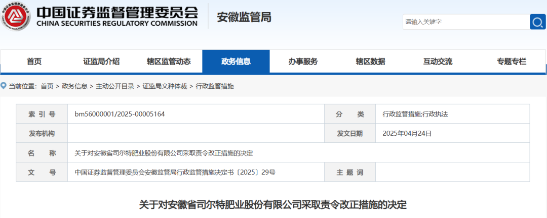 根据《上市公司信息披露管理办法》第五十二条之一项的有关规定,我局决定对你公司采取责令改正的行政监管措施并记入证券期货市场诚信档案。你公司应深入开展自查,按照企业会计准则规定要求,对相关财务核算及定期报告信息披露进行整改,依法依规做好2024年年度报告编制及披露工作。上述行为系公司资金被侵占所引发,现要求你公司追偿被侵占资金,完善内部控制建设,杜绝类似行为再次发生,并于收到本决定书之日起30日内向我局提交书面整改报告。
