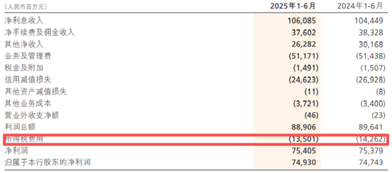 上半年,该行实际所得税税率15.19%,同比下降0.72个百分点。