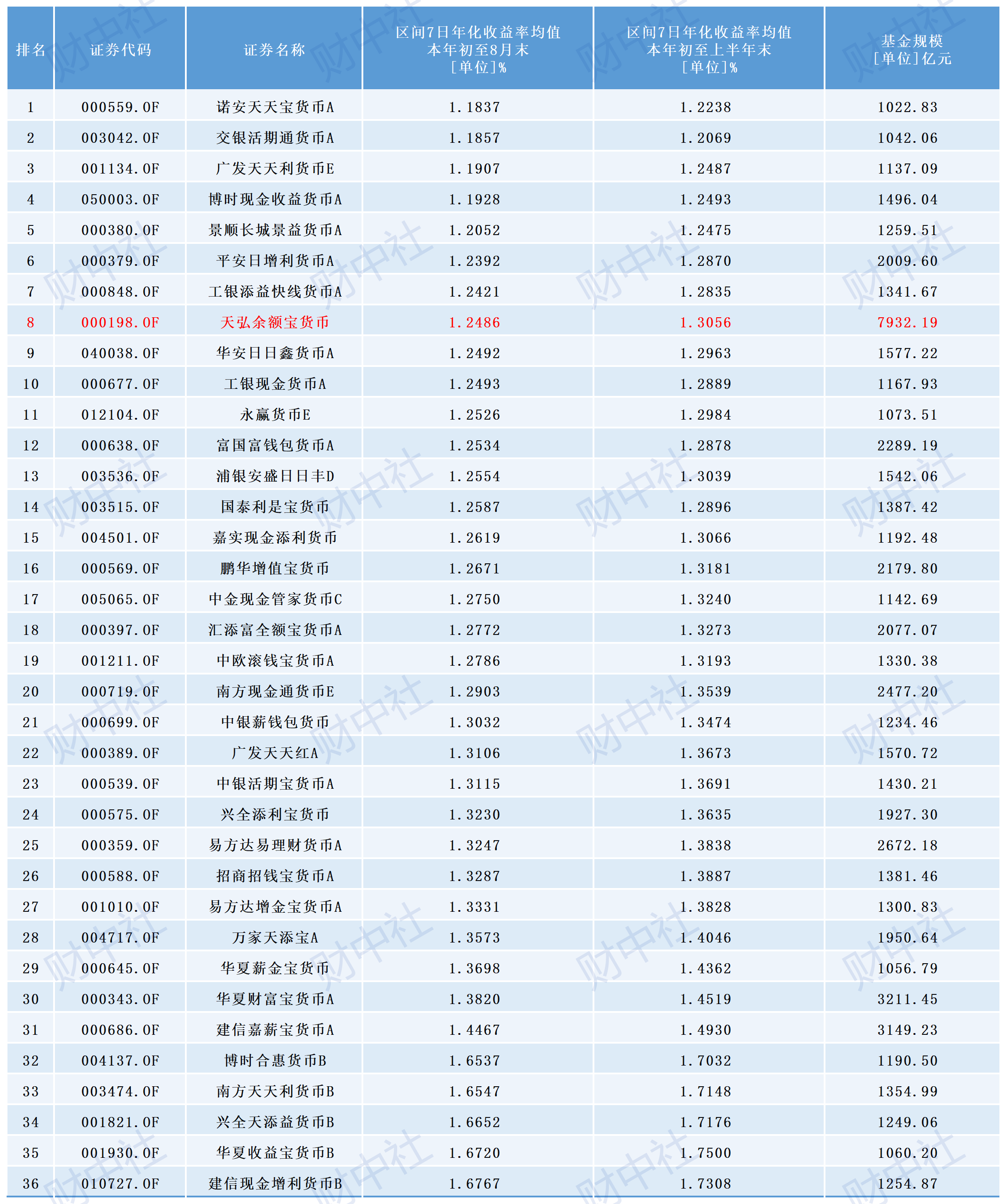 余额宝的表现更能凸显这种落差。作为中国更大规模的货币基金产品,它的存在一度改变了全民理财习惯。但进入利率下行周期后,余额宝的7日年化收益率持续探底。截至2025年6月30日,在36只规模超千亿的货币基金中,天弘余额宝货币以7923亿元的规模居于首位,但从上半年7日年化收益均值来看,余额宝的7日年化收益率以1.3056%排名行业中下游;年初至8月末的7日年化收益均值维度来看,余额宝以1.2486%的均值排名倒数第8位。在全行业横向对比中,余额宝几乎长期处于底部区间。投资者在余额宝中获取的收益不断减少,其留存逻辑更多依赖于支付场景和便捷性,而非收益本身。