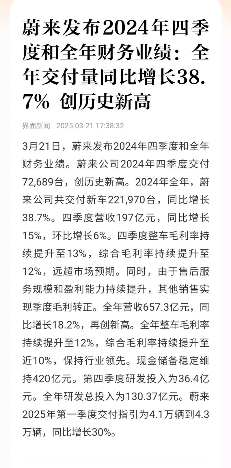 “于2025年第二季度,我们交付了72,056辆智能电动汽车,同比增长25.6%, ”蔚来创始人、董事长兼首席执行官李斌表示。“乐道L90及蔚来全新ES8获得市场热烈反响,进一步巩固了我们的整体销售增长势头。受益于这一强劲需求,我们预计第三季度的总交付量将达到87,000至91,000辆,同比增长40.7%至47.1%,创公司历史新高。”