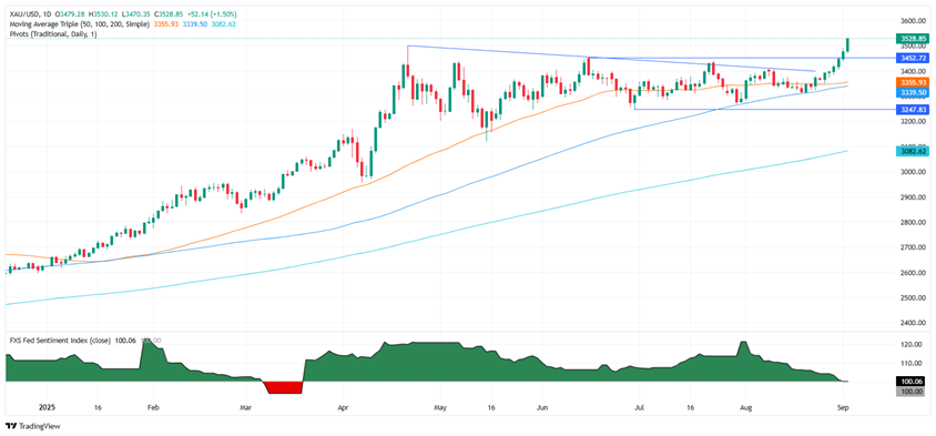 周三(9月3日)亚市盘中,现货黄金在上一交易日暴涨后维持坚挺走势,目前位于3541美元/盎司附近。FXStreet分析师Christian Borjon Valencia撰文,对金价走势进行分析。